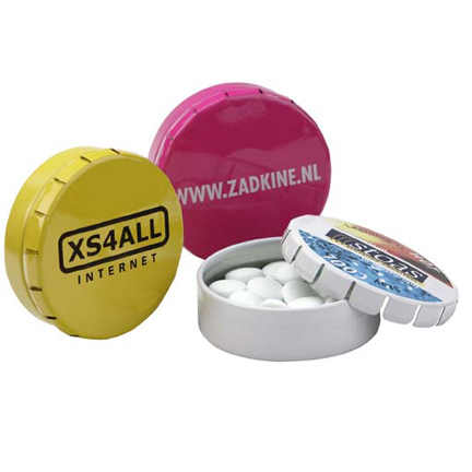 Ben je op zoek naar een klein maar krachtig relatiegeschenk? Het klein metalen pepermuntblikje met klikdeksel is dé manier om jouw merk fris onder de aandacht te brengen. Dit handzame blikje is gevuld met ca. 12 gram frisse pepermuntjes en kan volledig gepersonaliseerd worden met jouw logo of ontwerp in full colour op het deksel. Een subtiele maar effectieve manier om blijvende indruk te maken.